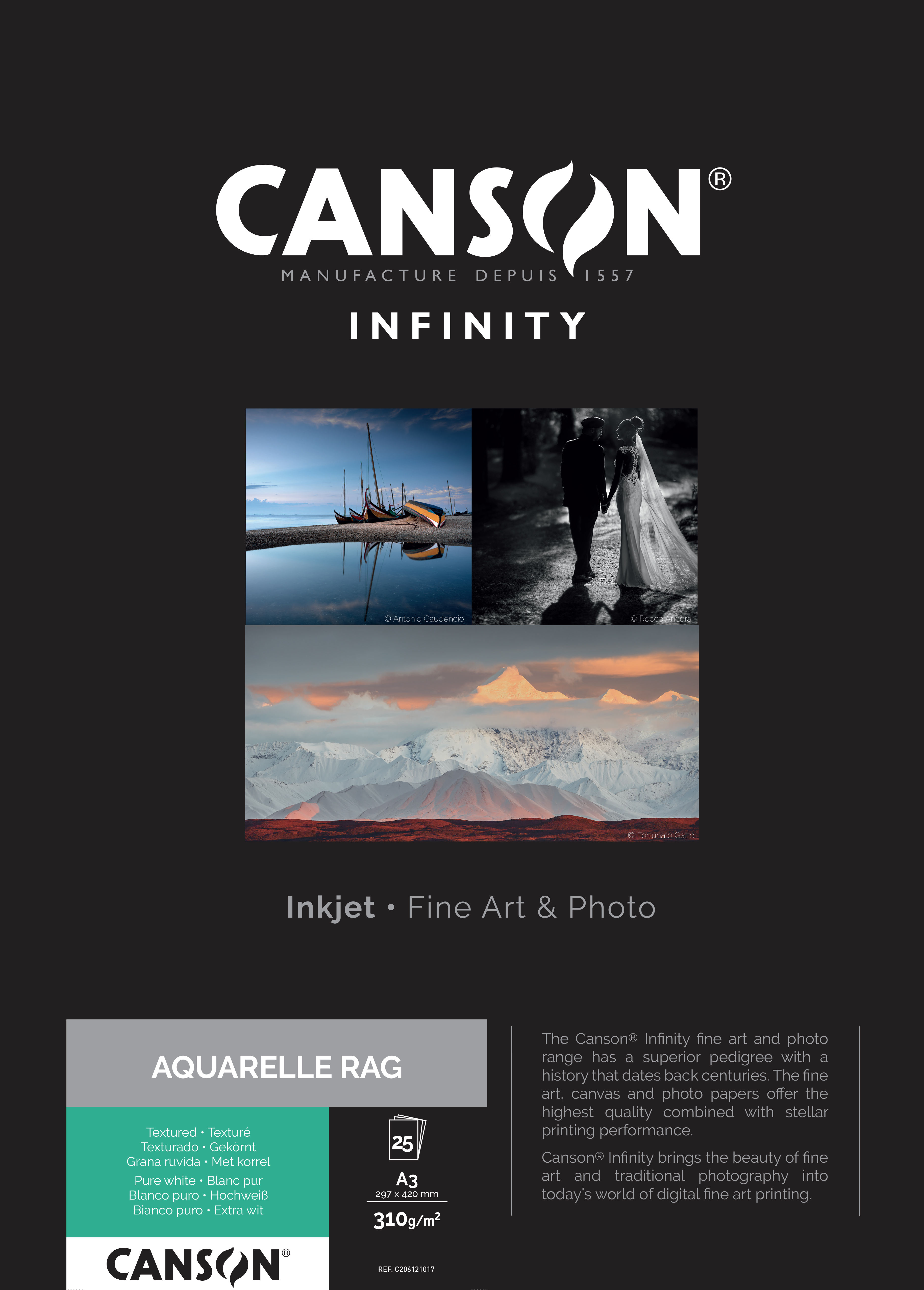 Arches® Aquarellpapier, die weltweite Nr. 1 der auf Rundsieb hergestellten Aquarellpapiere, ist jetzt auch in der Digital Fine Art & Photo-Serie erhältlich. Dieses Aquarellpapier aus 100% Hadern mit seiner einzigartigen Struktur, Oberfläche und seinem warmen Weißton erfüllt alle Ansprüche an ein traditionelles Künstlerpapier. Es entspricht Museumsqualität und ist hoch alterungsbeständig. Arches® Aquarelle Rag verleiht Reproduktionen von traditionellen Kunstwerken und Fotografien einen einzigartigen und unvergleichbaren Charakter.