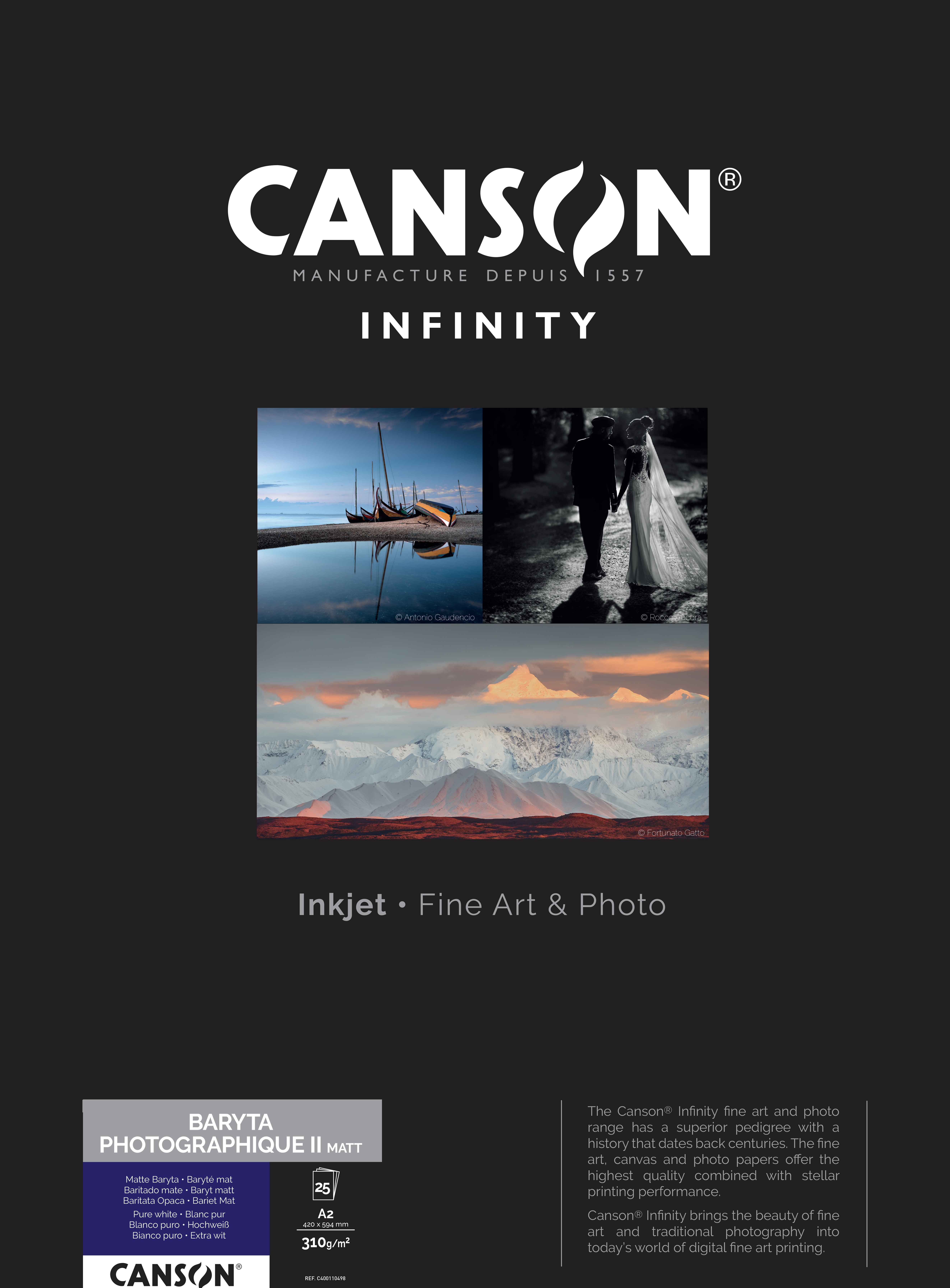 Die zweite Generation des beliebten digitalen Dunkelkammerpapiers hat dieselbe Bariumsulfatschicht (Baryt) wie das Baryta Photographique II und profitiert ebenfalls von einer verbesserten Verarbeitbarkeit. Das Papier Canson® Infinity Baryta Photographique Matt II bietet Fotografen und Druckern somit eine einzigartige Ästhetik und Haptik.