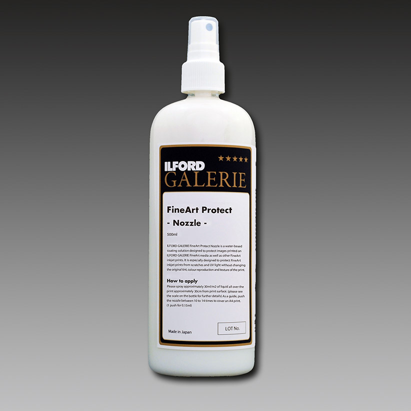 ILFORD GALERIE FineArt Protect (Nozzle) ist eine wasserbasierte Beschichtungslösung, die zum Schutz von Bildern entwickelt wurde, die auf ILFORD GALERIE FineArt Medien und anderen FineArt Medien gedruckt wurden. Es wurde speziell entwickelt, um Fine Art Inkjet-Papier vor Kratzern und UV-Licht zu schützen, ohne die ursprüngliche Tönung, Farbwiedergabe und Textur des Drucks zu ändern.